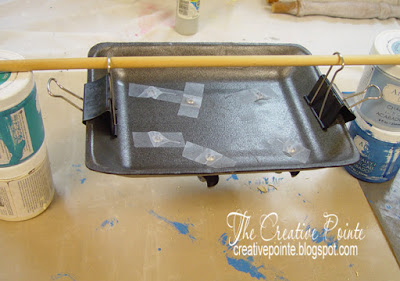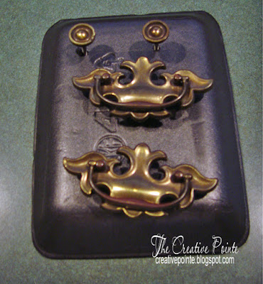 The only supply (other than paint) needed is a styrofoam meat tray. I use these mainly for disposable paint palettes but they work perfectly for painting hardware too. (Styrofoam plates would also work, but I like to recycle) Simply press your hardware through the tray. An impression in the styrofoam shows you exactly were to press the screws through.