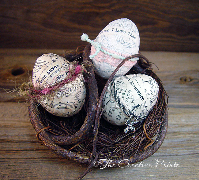 It's spring! And nothing says spring and Easter more than eggs. Why not use up those old plastic eggs you've been storing and turn them into something updated but with a vintage style? Follow the easy instructions below and make up a dozen or so for decorations or even Easter table favors.